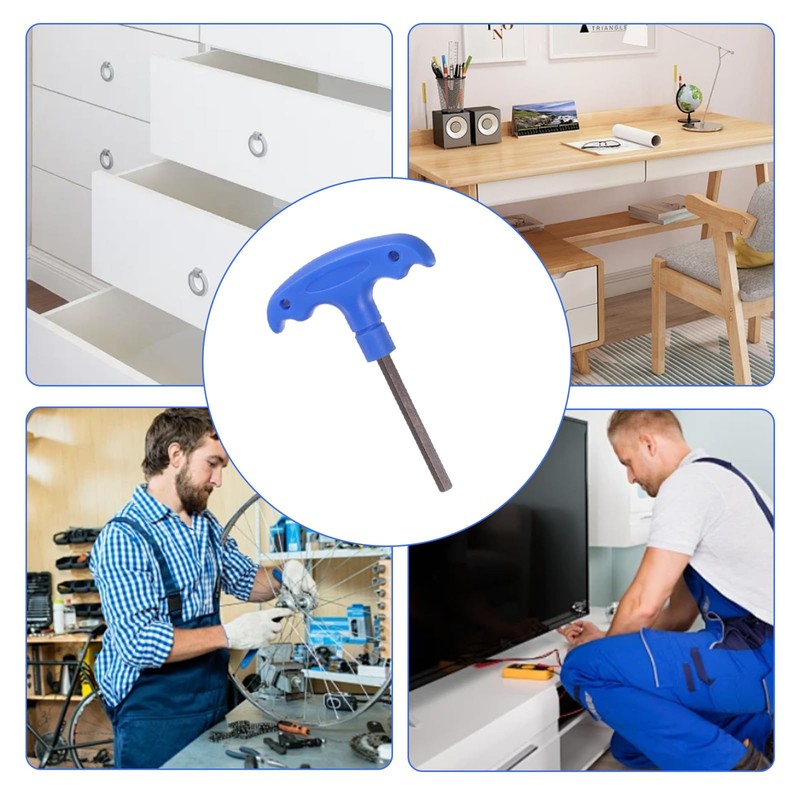 Widely used for removing and installing socket head screws in towel bars, door handles, assembled furniture, appliances, and more. Whether you are assembling furniture, repairing machinery, or working on automotive projects, the T-Handle Hex Wrench is an essential addition to your toolbox. Its versatility coupled with excellent build quality makes it a reliable tool that will serve you well for years to come.