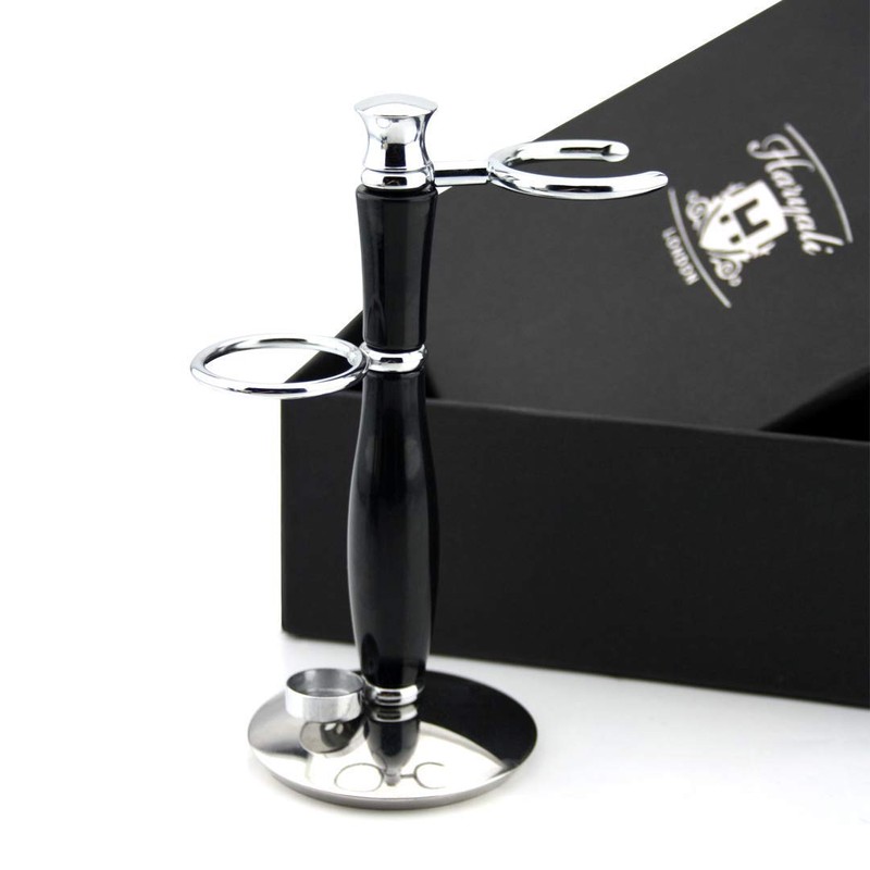 - Shaving stand will expand the life of brush by allowing it to properly dry. Stand is made up of high quality stainless steel with straight design. Set comes in a beautiful black box and can be a perfect gift set for your friends and family members on New Year’s, Birthday or Christmas.