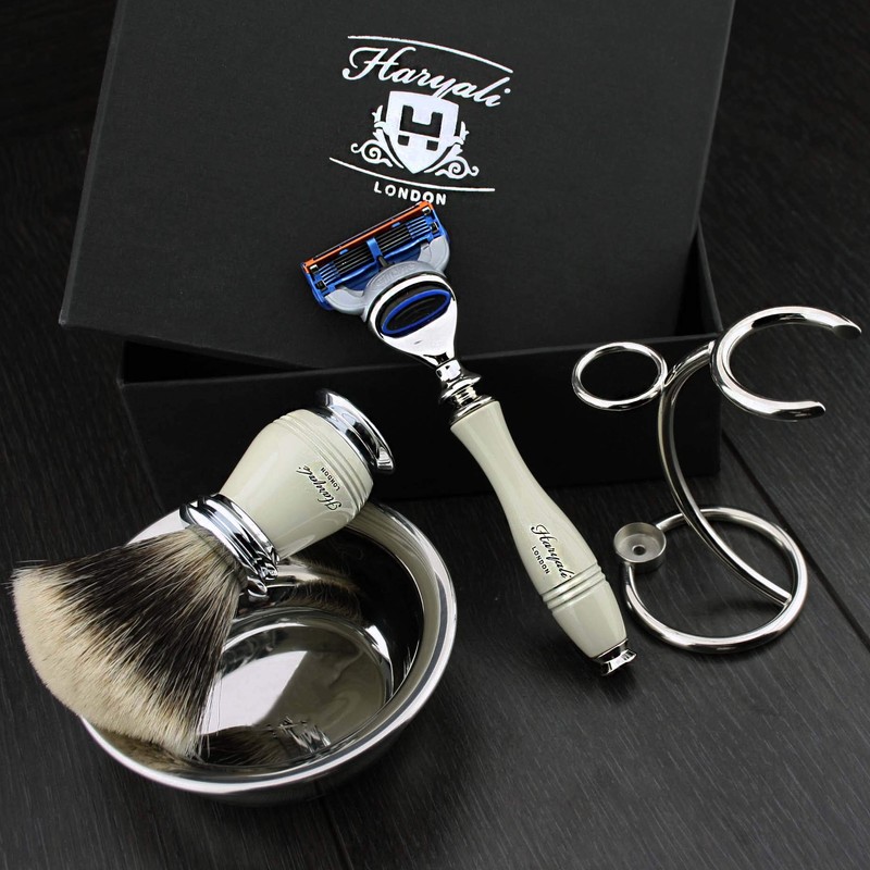 Haryali London Mens Shaving Kit with 5 Edge Compatible Razor, Shaving Brush, Stand and Bowl Perfect Set for Men