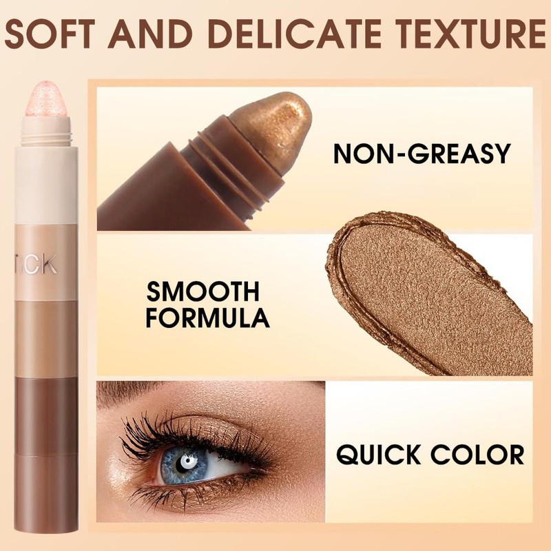 - 5-in-1-Lazy-Lidschatten-Set: Ein 5-farbiger multifunktionaler Lidschattenstift (Highlighter + Camouflage + Perlglanzlidschatten + Eyeliner + Grundierung), einfach um das natürliche Augen-Make-up zu vervollständigen, zeitsparend, auch Anfänger können schnell loslegen!
