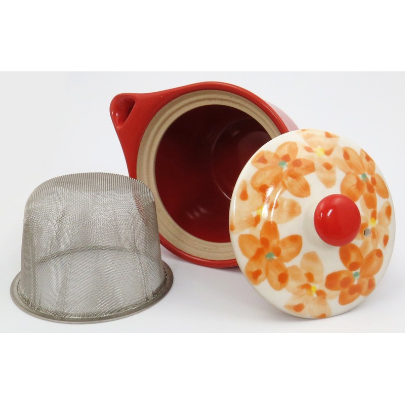 Hasamiyaki Zuko Kiln Glazed Yuka Pot with Tea Strainer, Orange