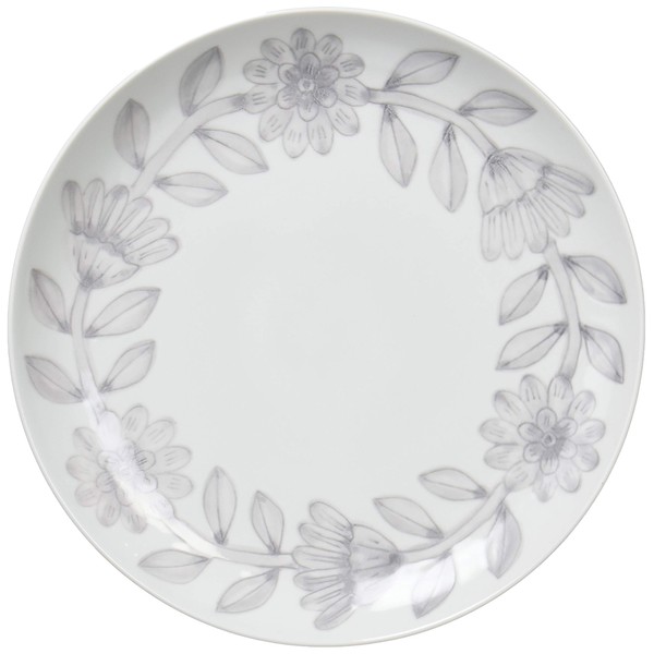 Hasamiyama Nishiyama Plate, 10.6 inches (27 cm), Daisy, Gray