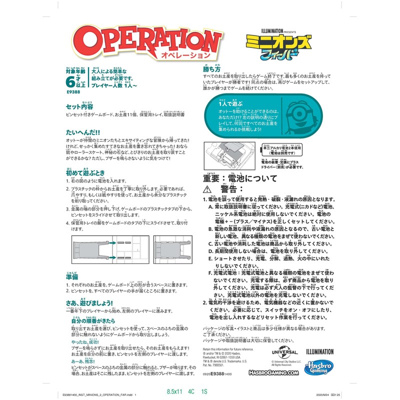 Hasbro E9388 Operations Minions Fever Board Game, For Kids, Indoor Electric Game, For Ages 6 and Up, Old Fashioned Surgery Games, 1 Player - E9388