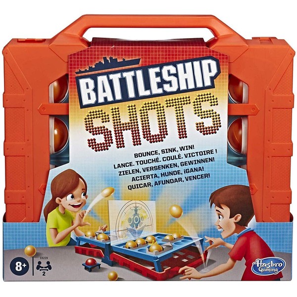 Bounce 'em in to sink and win! The Battleship Shots game presents a ball- tossing twist to Battleship gameplay. It's head-to-head competition, strategy, and excitement as players get on their feet and bounce or toss their balls over the divider to land them inside their opponent's ships! Players can amp up the suspense when they go for an immediate win by getting the red ball into their opponent's life raft. No ship is safe in this game of stealth and suspense, so position ships strategically to survive an opponent's relentless onslaught. The Battleship Shots game is a great indoor activity for kids ages 8 and up. Battleship and all related characters are trademarks of Hasbro.