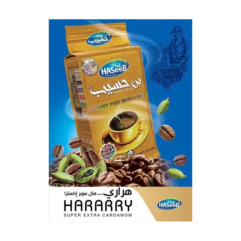 Indulge in the intense and aromatic experience of Haseeb Coffee - Hararry Super Extra Cardamom 500g. This premium blend is crafted with an extra-rich infusion of cardamom, delivering a bold and flavorful cup of coffee that embodies the true essence of traditional Arabic coffee. Perfect for those who crave a strong and distinctive cardamom flavor.