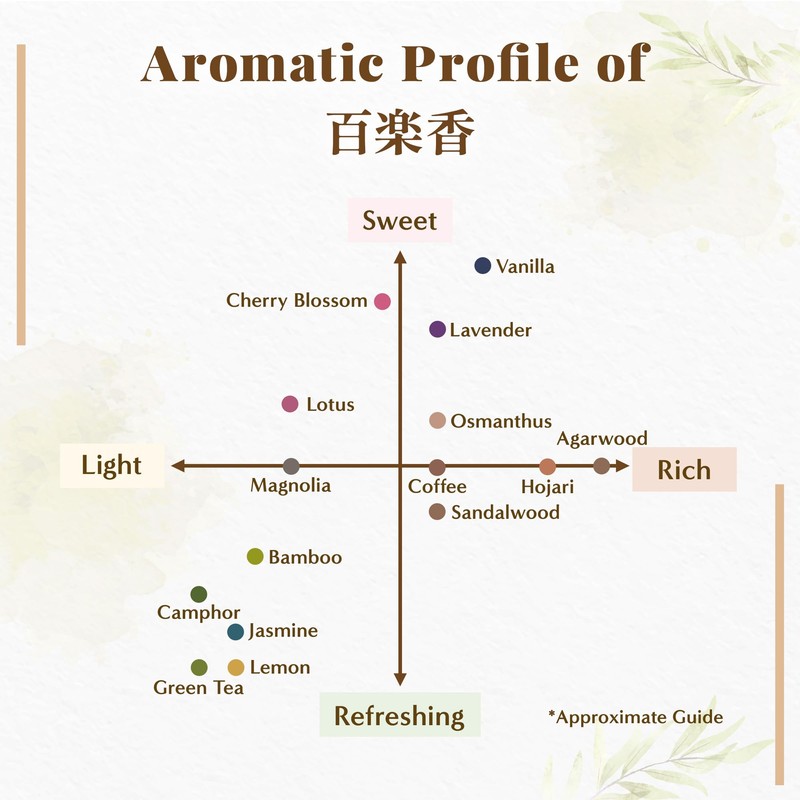 - 🌿 Premium Quality with Carefully Selected Ingredients The Hasegawa Hyakurakuko series features high-quality incense crafted from carefully selected natural sandalwood and other fine ingredients. This ensures a superior fragrance that adds a touch of elegance to any space.