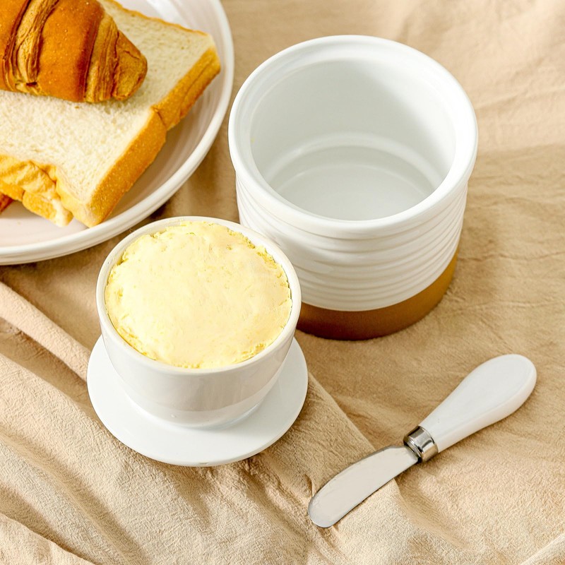 - Durable Ceramic Construction: Crafted from premium ceramic, the butter crock is durable, easy to clean, and resistant to scratches. The lid and water line design ensure butter stays fresh and secure