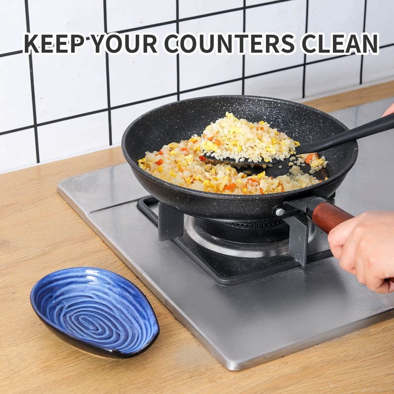 - EASY CLEANING AND SPACE SAVING: The surface of the spoon holder is glossy and smooth, so you can clean it with water or hand wash or place it into the dishwasher. Stove spoon rest will not take up too much space on your kitchen counter.