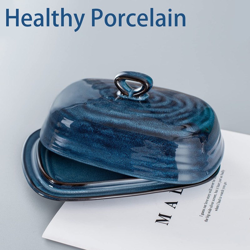 • High Quality Material: Our butter dish is made of durable porcelain. The porcelain is lead-free and chip-resistant. Our butter container is durable and can be used frequently in microwaves, refrigerators and dishwashers.
