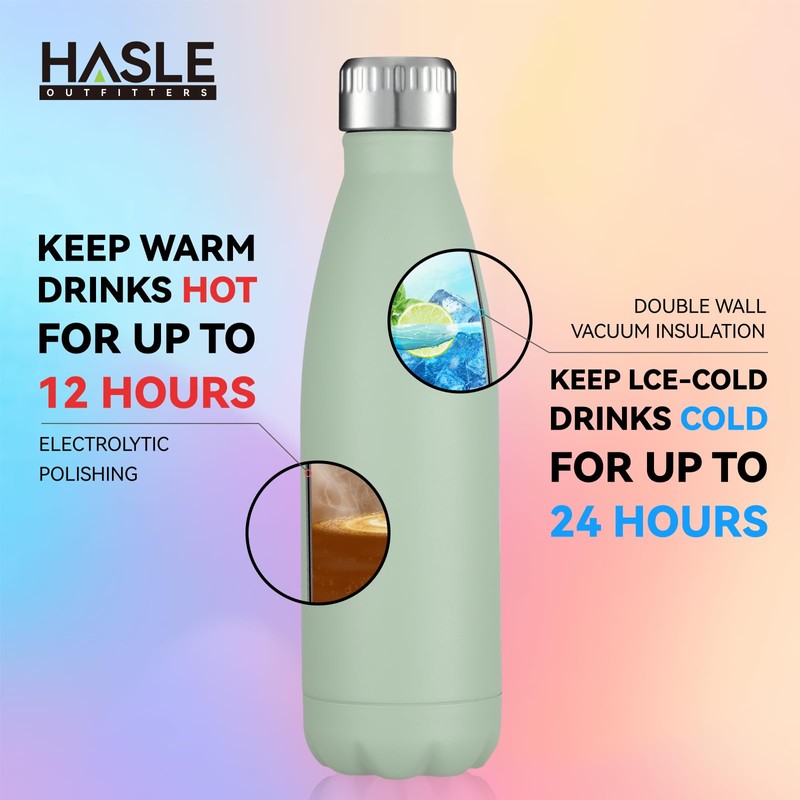HASLE OUTFITTERS 17oz Stainless Steel Water Bottles Bulk, Vacuum Insulated Water Bottles Double Walled Powder Coated Reusable Metal Sports Water Bottles Keep Drinks Hot and Cold, Light Green, 8Packs