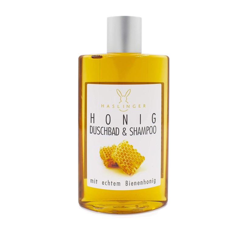 - Haslinger shower bath and shampoo honey smells good for snacking and is made with real bee honey and almond oil. The nourishing effect of honey has already been highly appreciated by Cleopatra. The almond oil keeps the skin soft and supple.