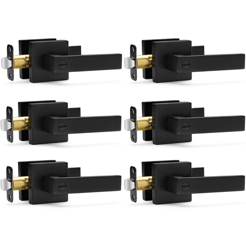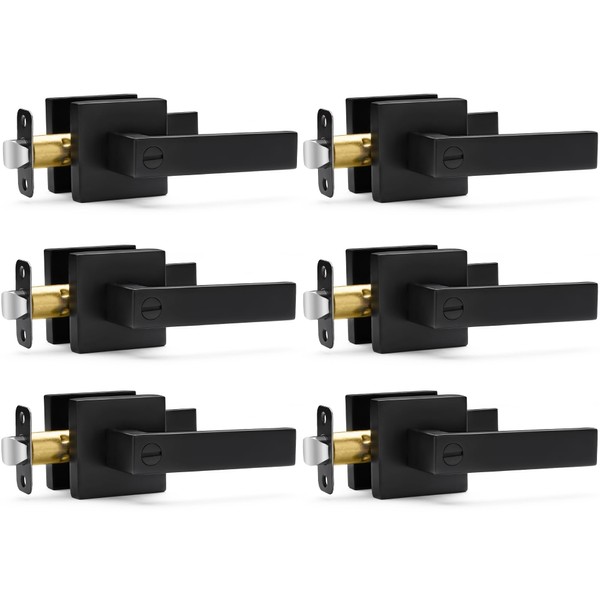 Hasmikit 6 Pack Matte Black Door Handles Privacy Door Levers, Heavy Duty Bed and Bath Door Locks Interior Door Knobs, Reversible Keyless Flat Levers with Square Rosette