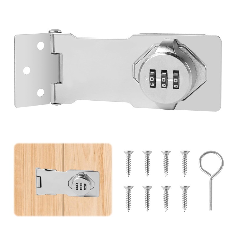 Hasp Safety Hasp Cabinet Lock Combination Lock with Combination Code 4.5 Inch Three Holes Silver with Screws Buckle Lock Hasp Lock for Cabinet Small Doors Cabinets