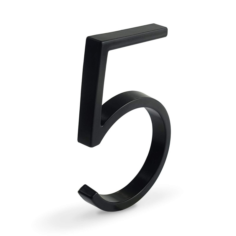 HASWARE Floating House Number Sign 5 inch (12 cm) Modern Door Numbers Signage Plaque Street Home Address Numerals, Black Metal (5, Black)
