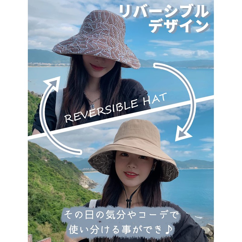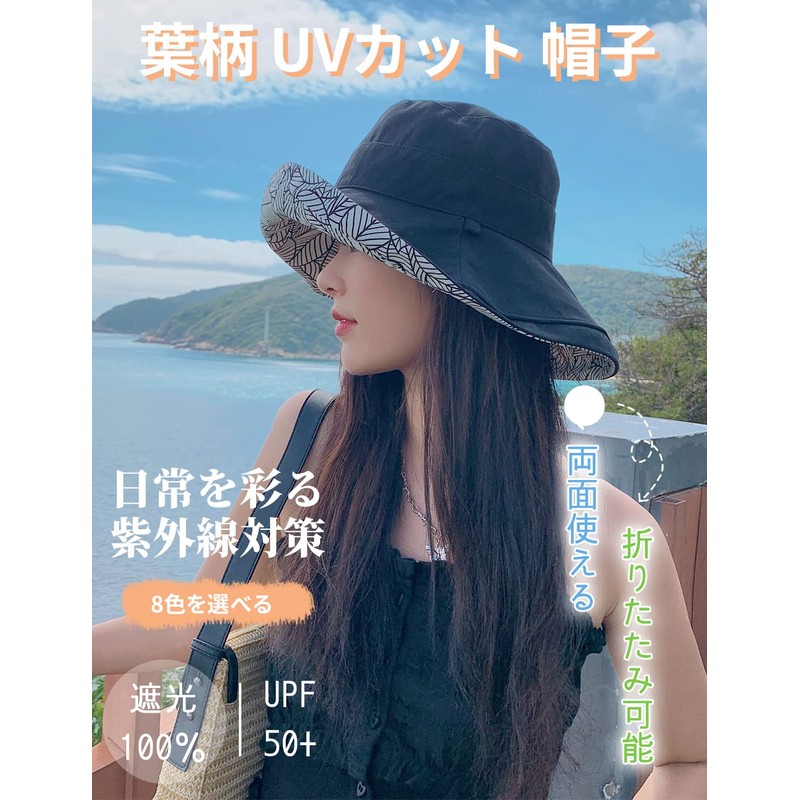 Hat, Double Sided, UV Protection, Bucket Hat, Women's, Leaf Pattern, Bucket Hat, Small Face Effect, Removing Chin Strap, Prevents Blowing from the Wind, Foldable, Portable, UV Protection, Sunshade,