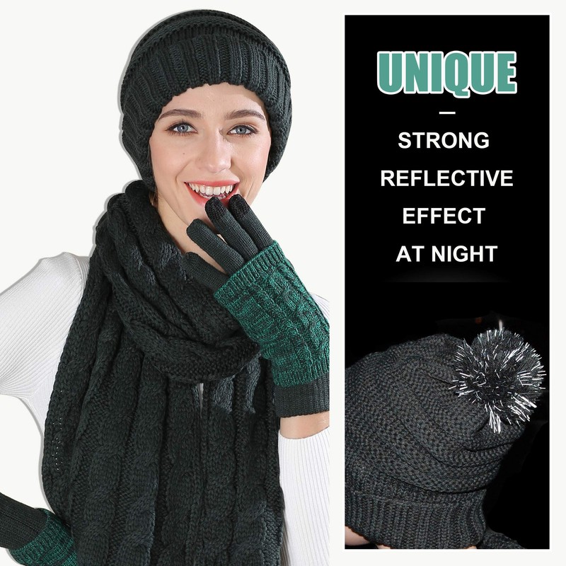 3-in-1 Womens Winter Hat Scarf and Gloves Set, Stay Warm All the Time,Give You a Stylish Winter!