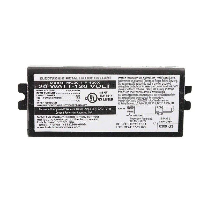 Hatch MC20-1-F-120X Electronic MH Metal Halide Ballast, 1-Lamp, M156, 20W, 120V