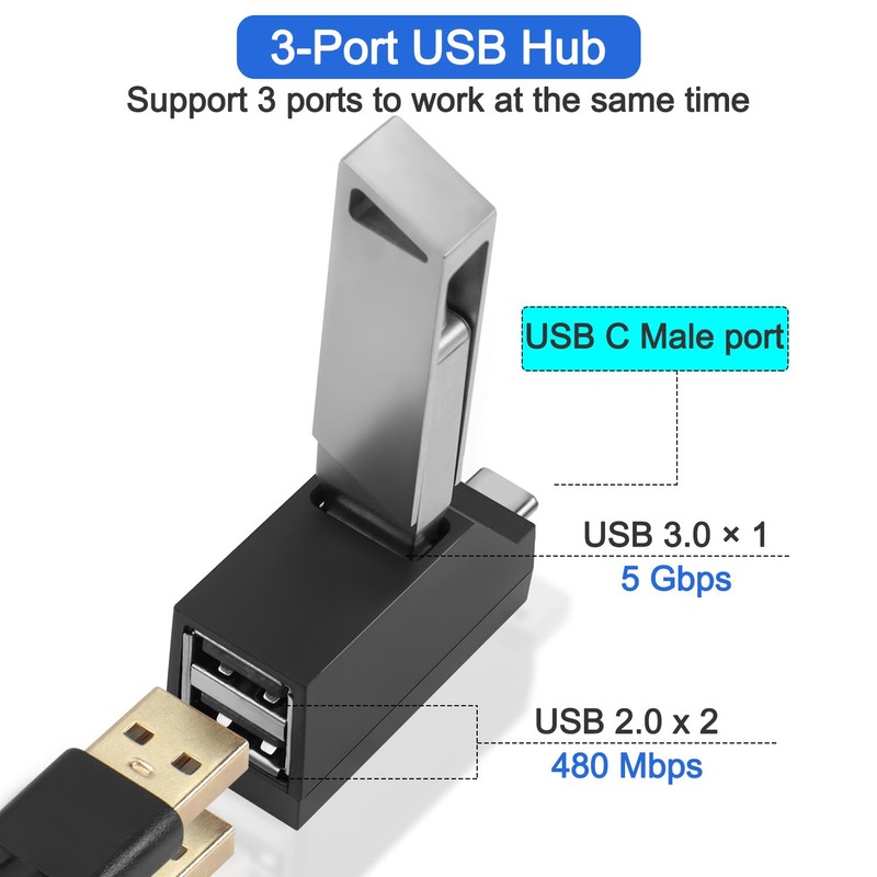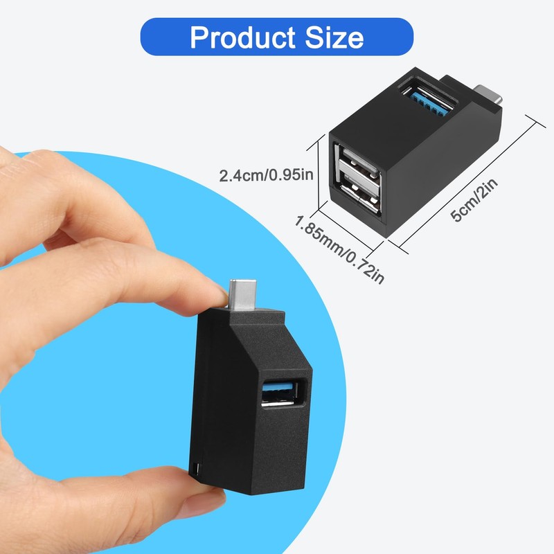 HATMINI USB C to USB Adapter,3Port USB C Hub Adapter 2 Pcs 90 Degree USB Hub Splitter 1 USB 3.0 and 2 USB 2.0 Port Portable Powered Data for Connecting Mobile Hard Disk, U Disk, Camera, Mouse,etc