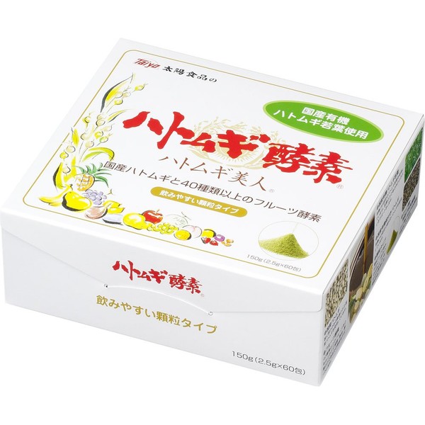 「ハトムギ酵素2.5g*60包」は、国産ハトムギをベースに、40種類以上のフルーツからつくられたフルーツ酵素、オリゴ糖をバランス良く配合した自然のままの粉末酵素食品です。「身体の中からのキレイ」を目指す方の毎日の美容と健康維持にお役立てください。飲みやすい顆粒タイプ。