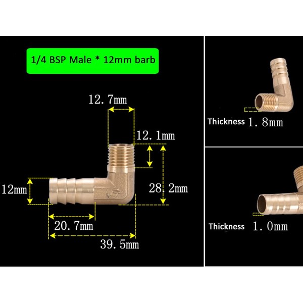 1/4" BSP Male Thread Outer Diameter ≈ 12.5mm