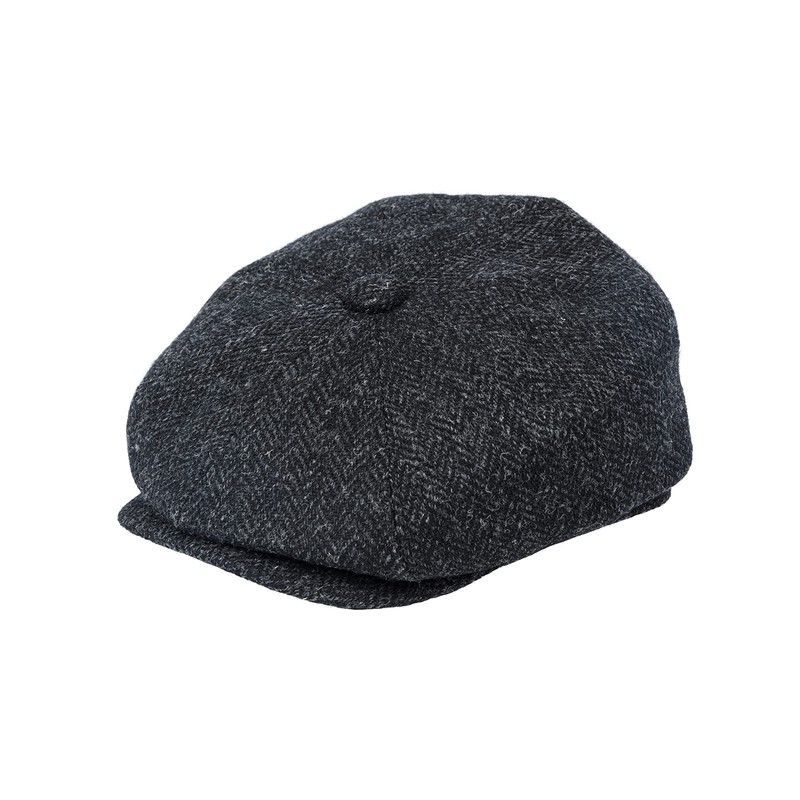 Hats of London Harris Tweed Herringbone Newsboy Cap (as8, Alpha, l, Charcoal)