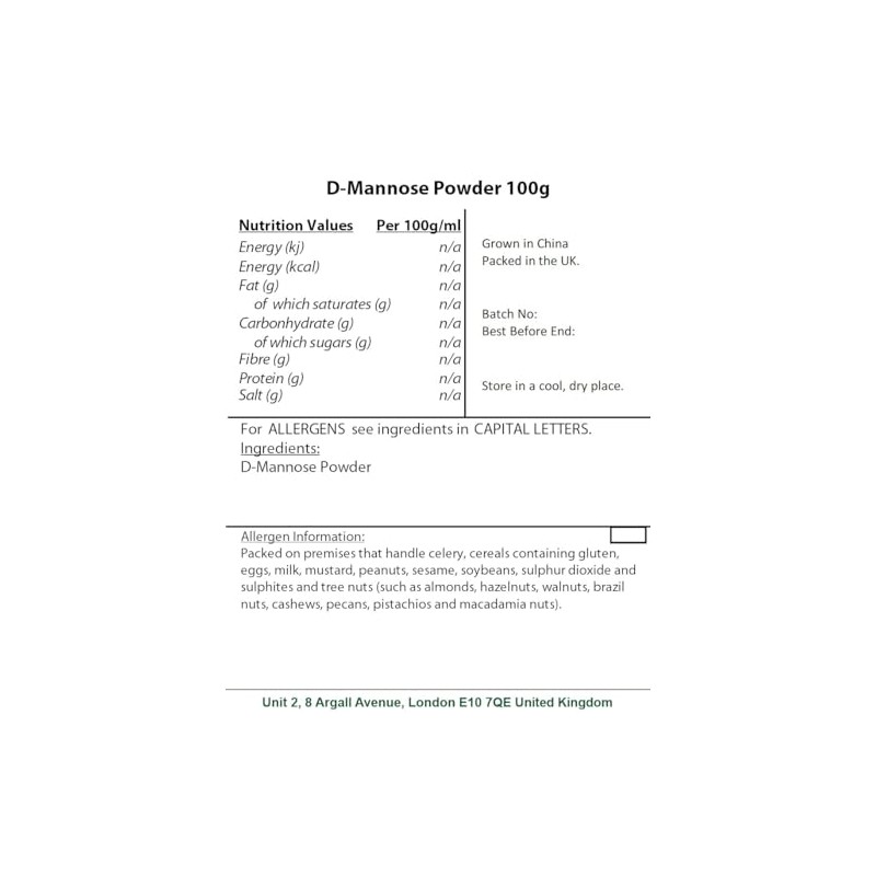 Product descriptionD-Mannose Powder is a high-quality supplement sourced from nature. D-Mannose, a simple sugar, is metabolised differently from other sugars, making it suitable for those following specialised diets. With its convenient powder form, this supplement can be easily mixed into beverages or smoothies for a daily boost of urinary wellness. Prioritise your well-being with D-Mannose Powder, a trusted choice for maintaining a healthy urinary system.IngredientsD-Mannose Powder