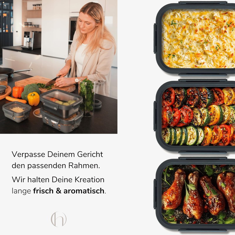 • Sustainability through durability: We rely on selected materials in the manufacture of the containers to generate the greatest possible benefit with thoughtful design. That's why the food storage boxes with lids should accompany you for many years. Should something break nevertheless, we are able to provide targeted spare parts that extend life even further.