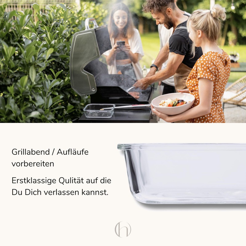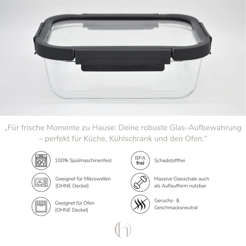 HATTY HAYS Food storage containers with lid airtight [640 ml] glass containers with lid made of glass and plastic frame, meal prep boxes ideal as cold cuts boxes for fridge or casserole dish with lid