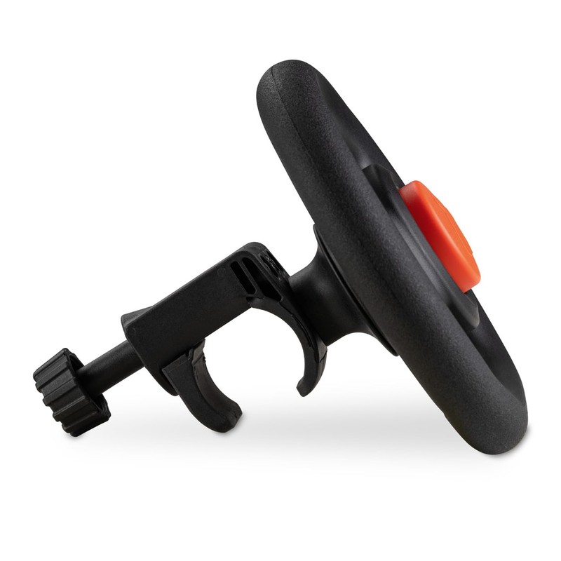 - Easy to attach: the children's steering wheel made of robust plastic is quick and easy to attach. And just as quickly you can remove it and store it in the shopping basket