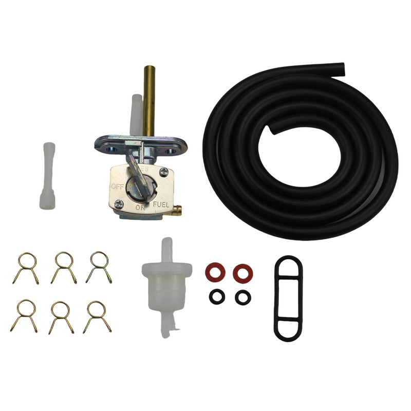 - Package including: 1 x fuel valve, 1 x Fuel line, 1 x fuel filter, 6 x Clamps,4 x O-ring