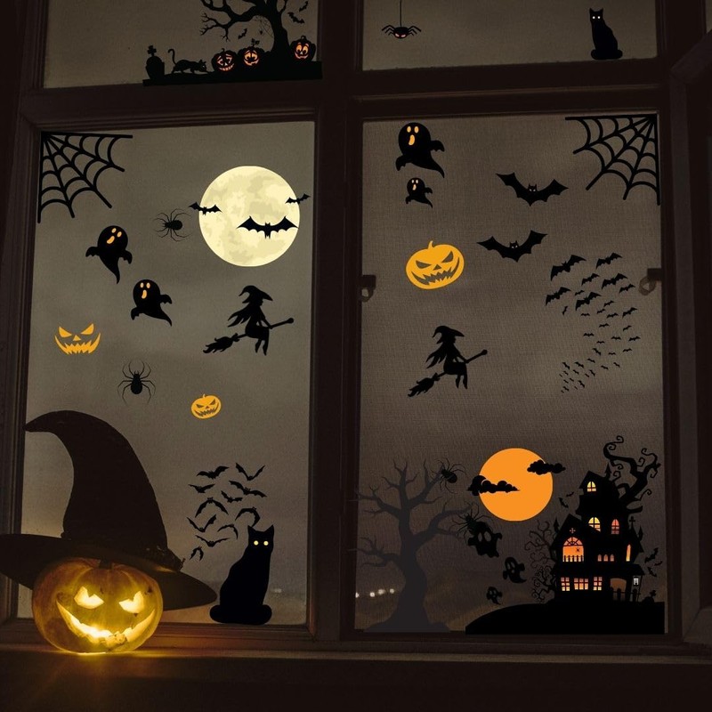 - 🎃 Haunted Halloween - One Pack of Haunted Halloween Sticker Sheets contain 53PCS. Our Halloween window clings are perfect for Halloween window decorations or Halloween parties! The Haunted House Sticker set contains Bat, Ghost, Cat, Witch, Spider and Haunted House Window Stickers for all your spooky festivities.