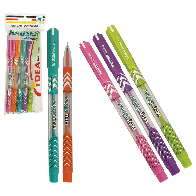 HAUSER Idea 5 x 0.7mm Tip BLUE Ballpoint Pens Smooth Writing Ink Comfort Grip