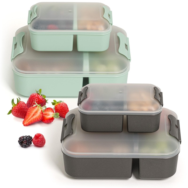 Hausfelder Lunch Boxes, Set of 4, Lunch Box with Compartments, Bento Box for Adults and Children (Space Black and Mint Green, 2 x Large, 2 x Small)