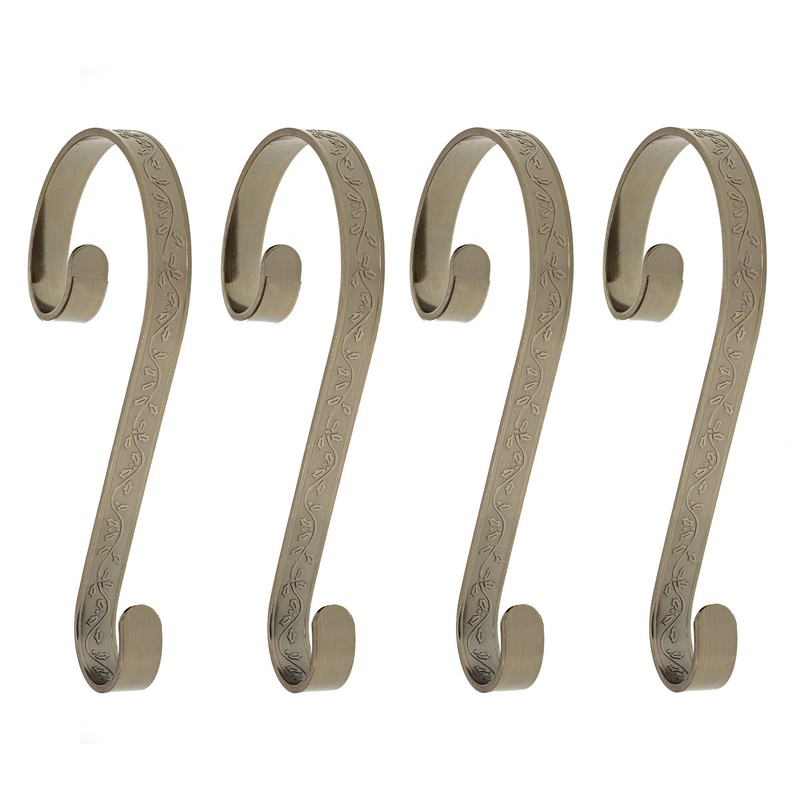 Haute Decor Stocking Scrolls Stocking Hanger- 4 Pack Holly Embossed (Antique Brass)