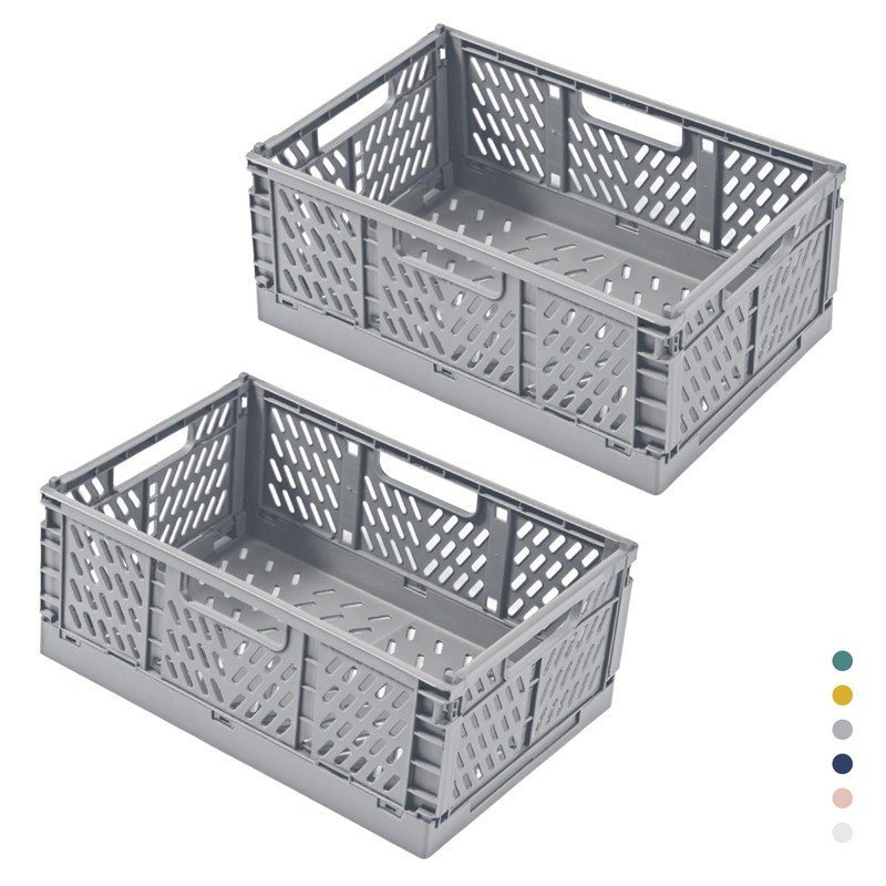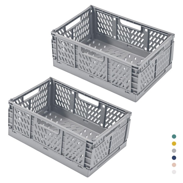 hautllaif Pack of 2 Foldable Plastic Storage Boxes, Foldable Shopping Box, Sturdy Folding Boxes for Kitchen, Office, Bedroom, Cupboard, Drawer (Grey, 30.5 x 20 x 12.5)