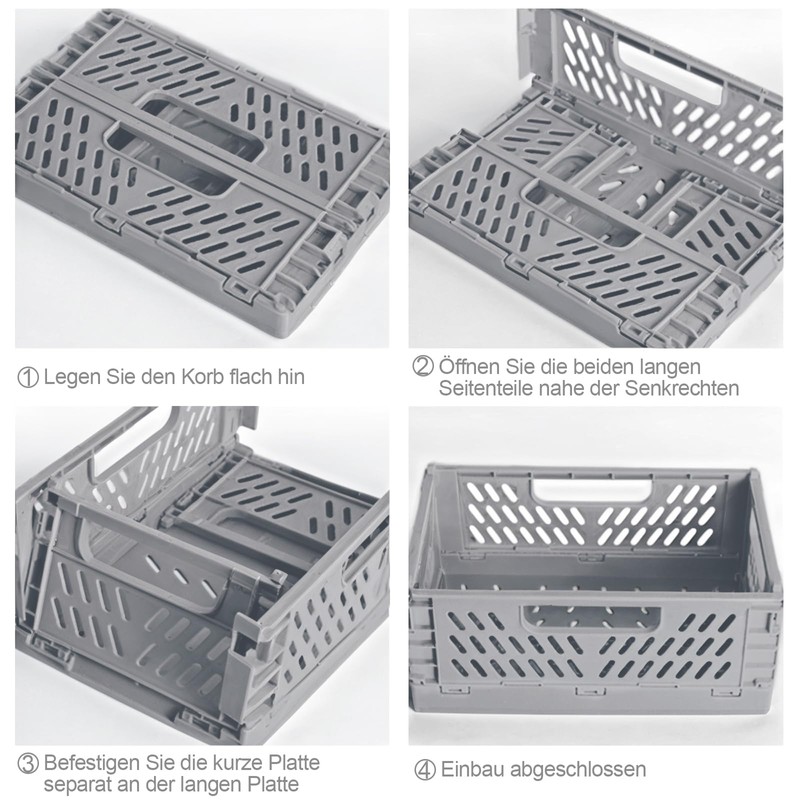 Product features: The folding baskets are foldable and can be quickly assembled and dismantled without tools. Folding saves storage space, and the baskets can also be stacked on top of each other so they take up less space. The baskets can be folded up to save space even when not in use. It creates a tidy work surface for your living room, bedroom, kitchen, office, indoors, outdoors and more.