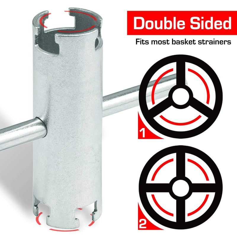 - Llave esencial para cualquier colador de cesta y una necesidad para quitar las tuercas de tinción del fregadero
