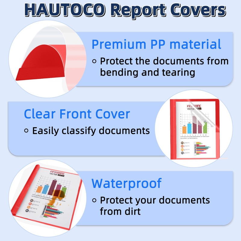HAUTOCO Report Covers with 3 Prong Clear Front Presentation Folders