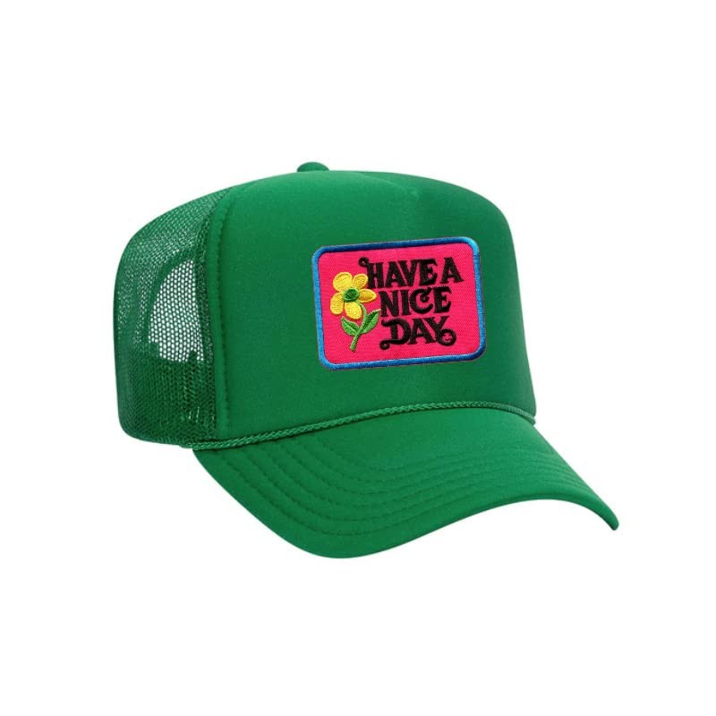 Have A Nice Day Vintage Patch Trucker Hat (Green/Pink)