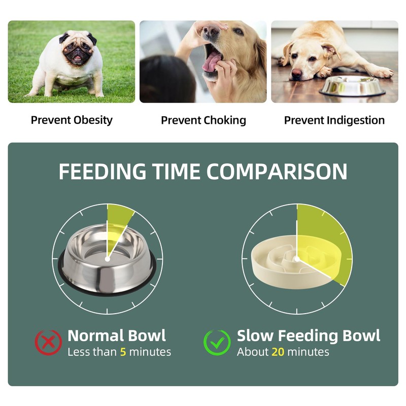 - Slow Down Eating Up to 10X : Havniva Slow Feeder dog bowls feature meal-lengthening ridges to help slow down your dog’s eating time by 10X! Anti-Chocking , Unique slow feeding design , promotes healthy slow eating, helping prevent obesity, bloat, regurgitation and overeating.