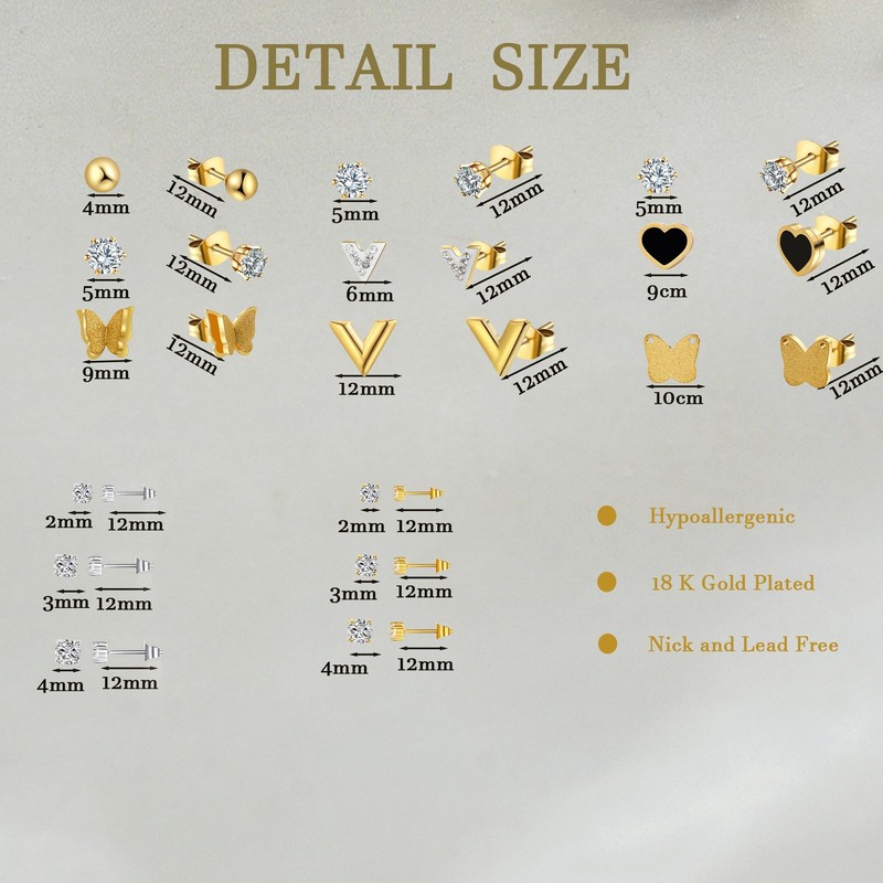 - Premium Material:Our gold earring set is crafted from premium 18k stainless steel and meticulously inlaid with dazzling zircon stones. The 18k stainless steel is not only robust but also boasts excellent hypoallergenic properties, making it a unburdened choice for those with sensitive skin. The lightweight material is so comfortable, you'll hardly notice it's there