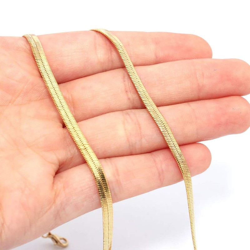 - Herringbone Design: The special herringbone chain design shows the smooth surface of the chain. 5 mm gold snake necklace lays flat on your beautiful neck like smooth and soft silk, keeping you elegant and comfortable