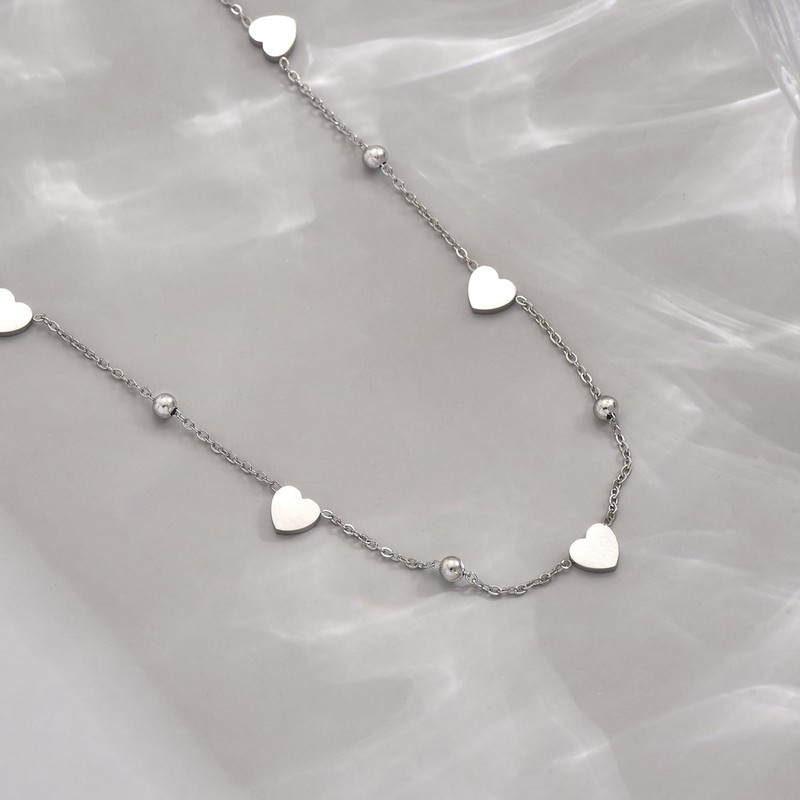 - Heart Beaded Chain Design: This dainty necklace is elegantly crafted with a delicate pure chain that artfully connects sparkling beads and delicate heart pendants, creating a subtle yet luxurious ambiance