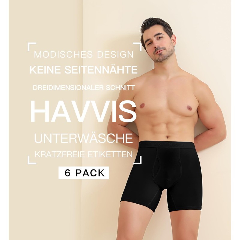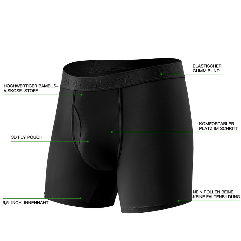 HAVVIS Boxer Shorts Men's Bamboo Underwear Men Super Soft Breathable Boxer Briefs Multipack Men Retro Shorts, C05 - 6 Pack - Black