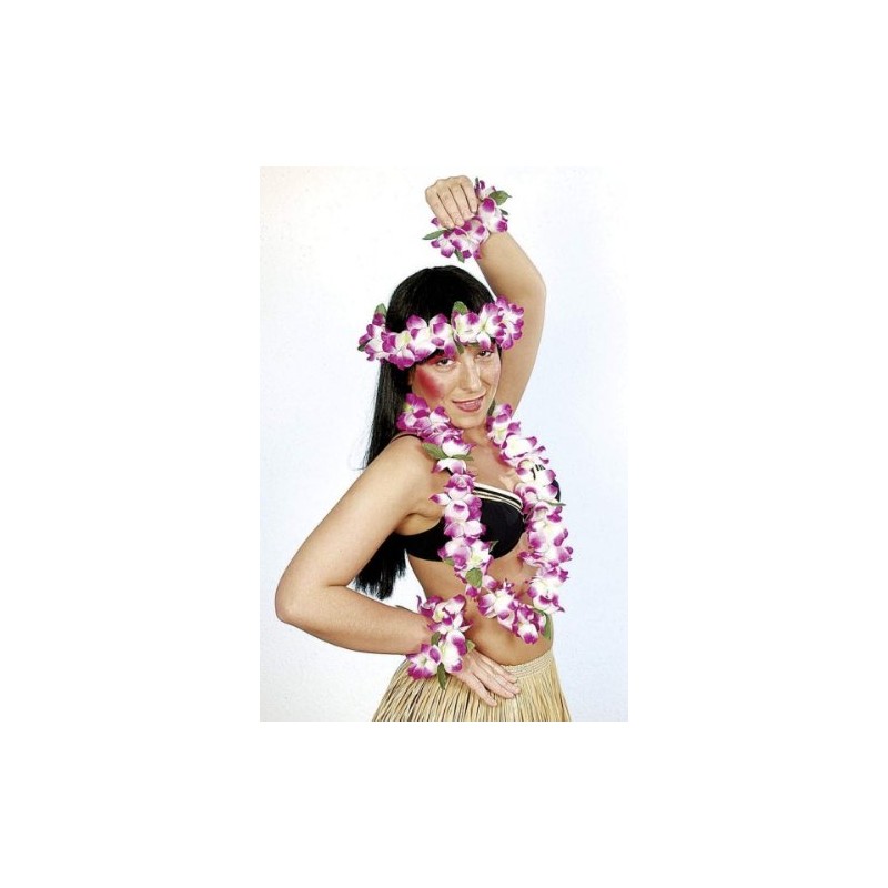 Hawaii-Set, exklusiv, vierteilig: Halskette, Kopfband, 2 Armbänder, Farbe:lila