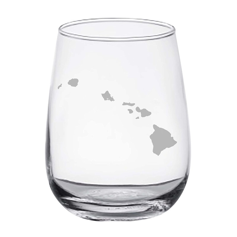Hawaiian Islands Map engraved rocks, stemless wine & pint glasses. Please note the style (rocks, wine, or pint) that you'd like when you place the order.