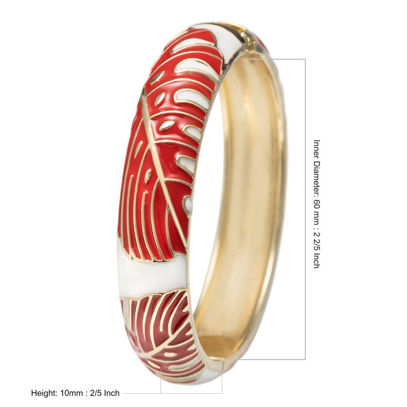 Hawaiian Monstera Luau Leaves Hinged Clasp Fashion Enamel Bangle Bracelet, Metal, no