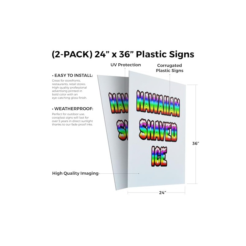 - Hawaiian Shaved Ice (2-PACK) 24" x 36" Plastic Signs