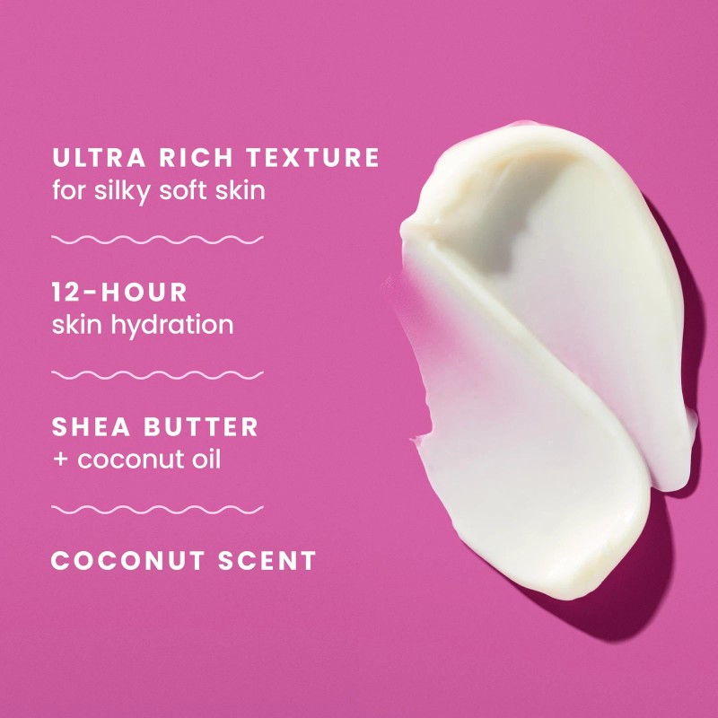 - ULTRA-RICH MOISTURIZERS leave skin feeling silky-soft, with an indulgent coconut scent that reminds you of a dreamy vacation