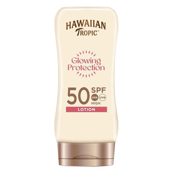 Hawaiian Tropic Glowing Protection Sunscreen Lotion, Waterproof Sunscreen Lotion with SPF 50 UVA + UVB Protection, Tropical Fragrance, with Shea Butter, 180 ml